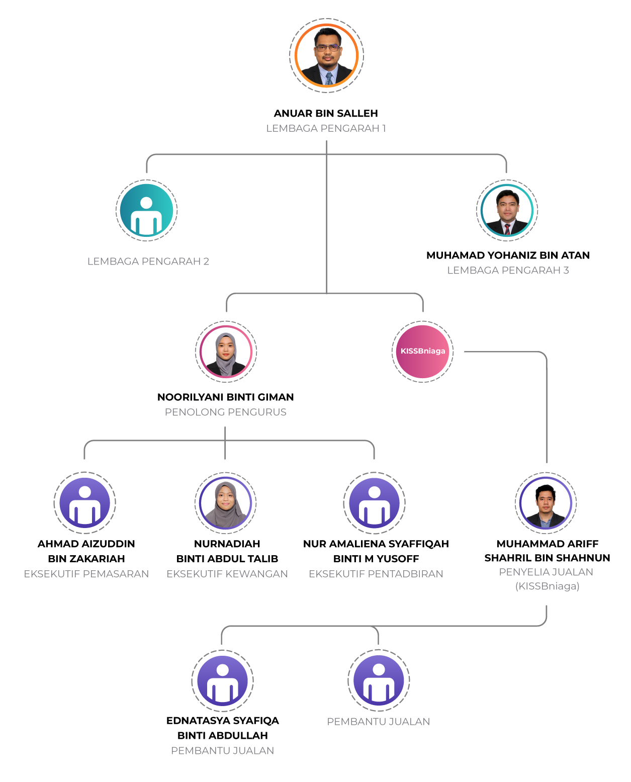 Fokus pemasaran dan jualan bagi produk-produk adalah dengan pendekatan secara atas talian melalui portal www.kissbniaga.com yang bersifat mesra pengguna (user-friendly) dimana tempahan dan pembayaran produk hanya dilakukan dalam talian.